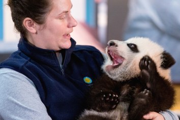 Mirror neurons going off in PaiPai, the panda, mirroring the handler’s gesture – stage one of empathy